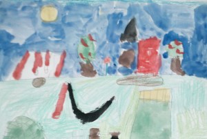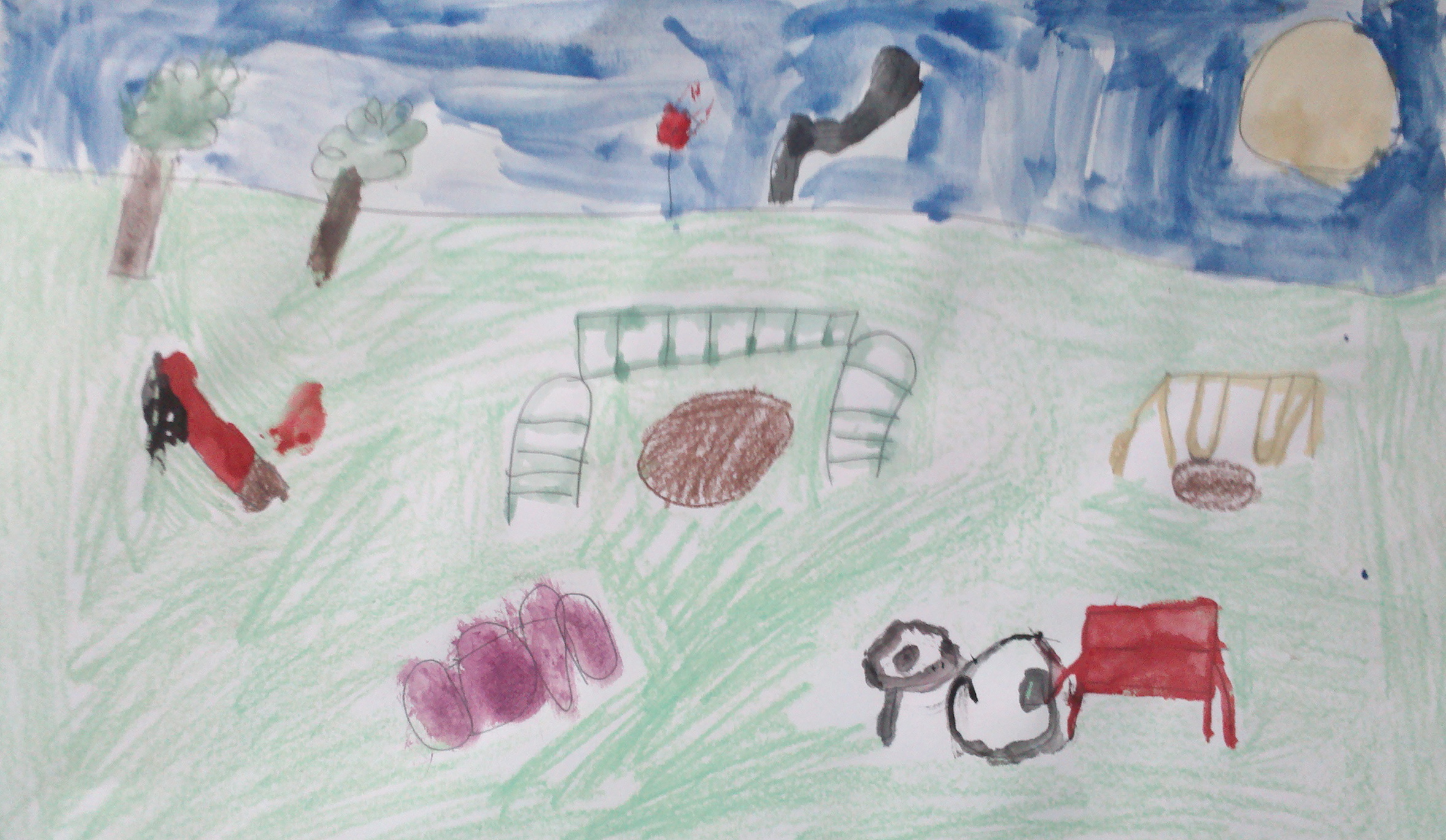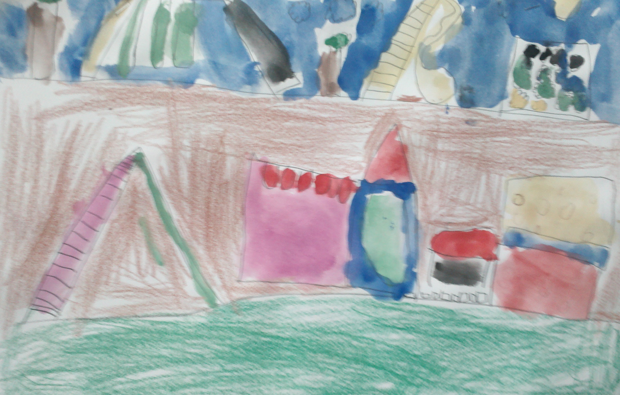The 1st grade has been learning about geometric and organic shapes. The 1st grade has learned how to paint using tempera cakes and paintbrushes. We painted a playground design using geometric shapes.