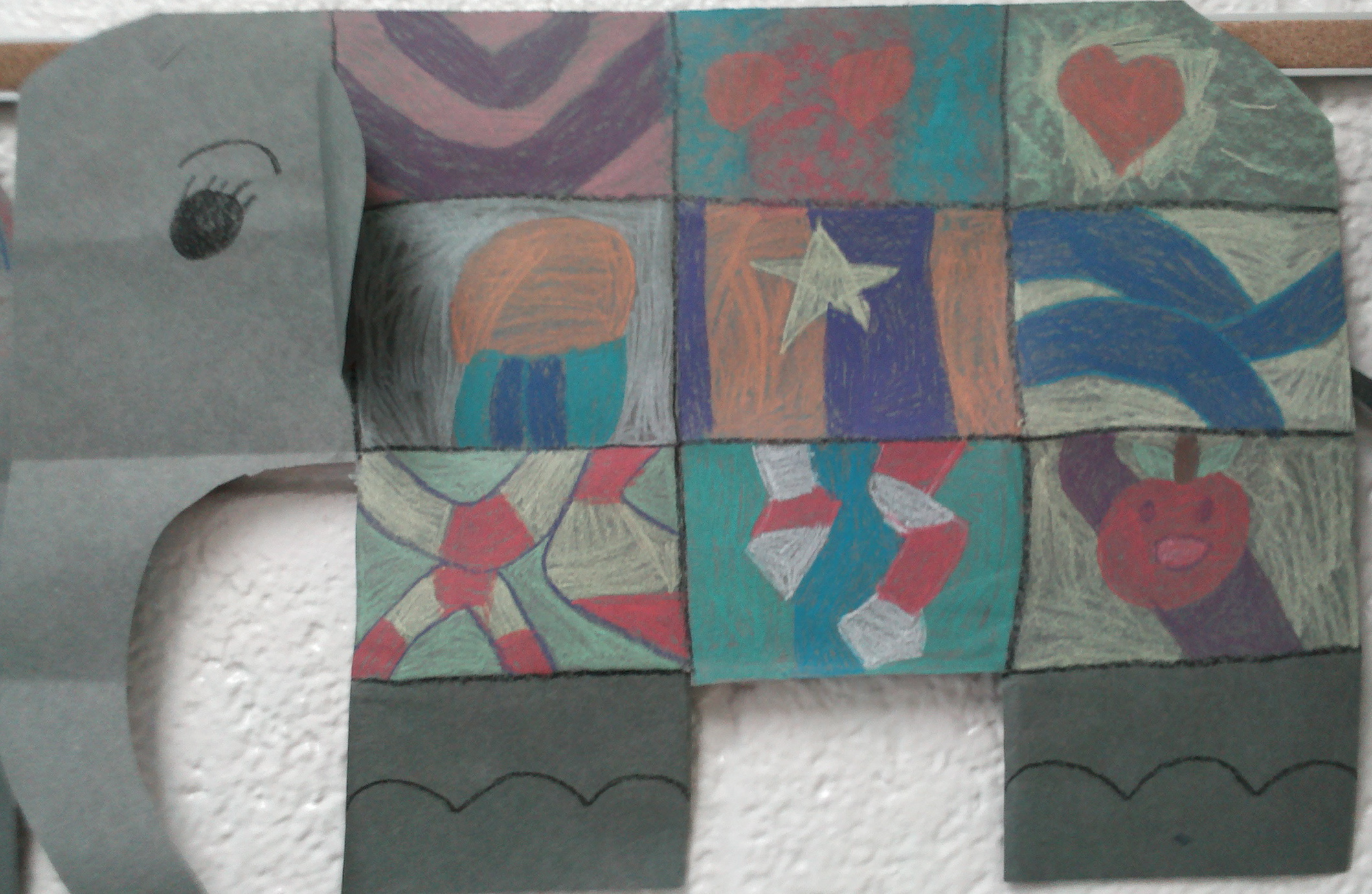 The 3rd grade has been learning about pattern, artistic expression, and color. We read Elmer by David McKee which tells the story of an elephant who learned to love being different. We created elephants using nine different patterns. The 3rd grade has been learning about I and the Village by Marc Chagall. We created artworks that used symbols from our memories. We learned about the abstract art of Mark Rothko and created paintings using warm colors.