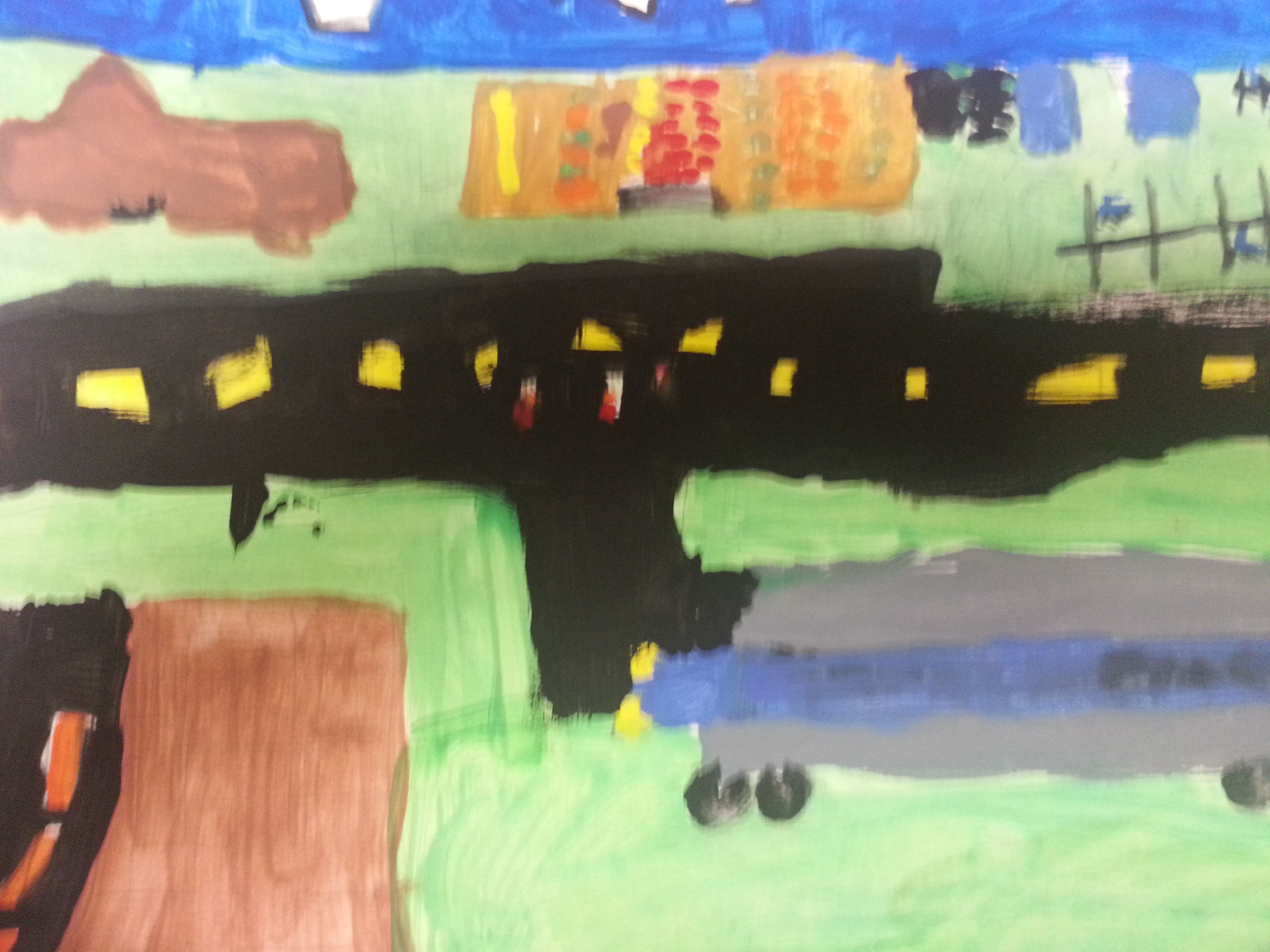 The fourth grade took their knowledge of color mixing and mixed realistic colors for a landscape.