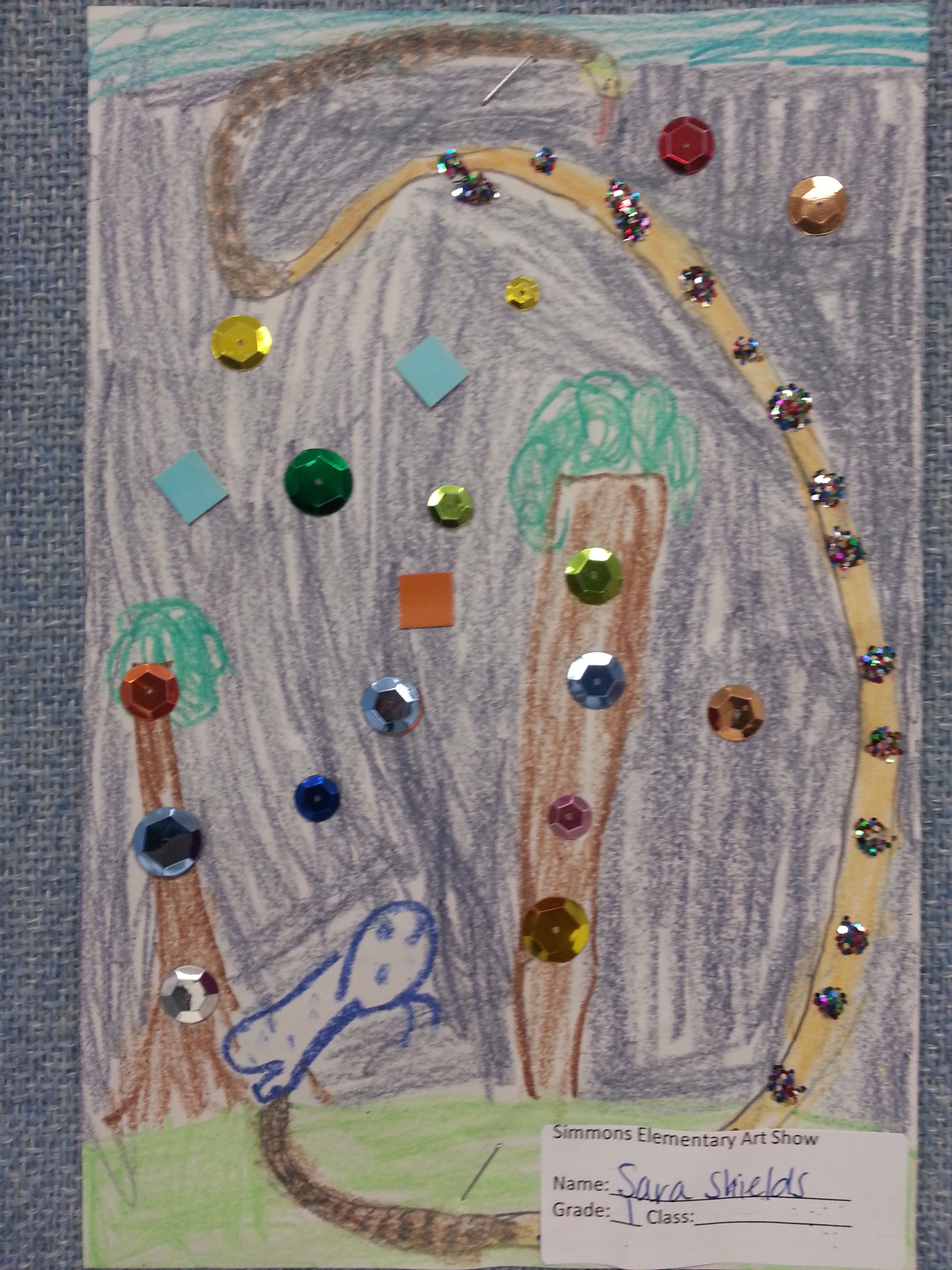 The 1st grade also learned about art in books, called illustrations. We created collage artworks using our first initials.