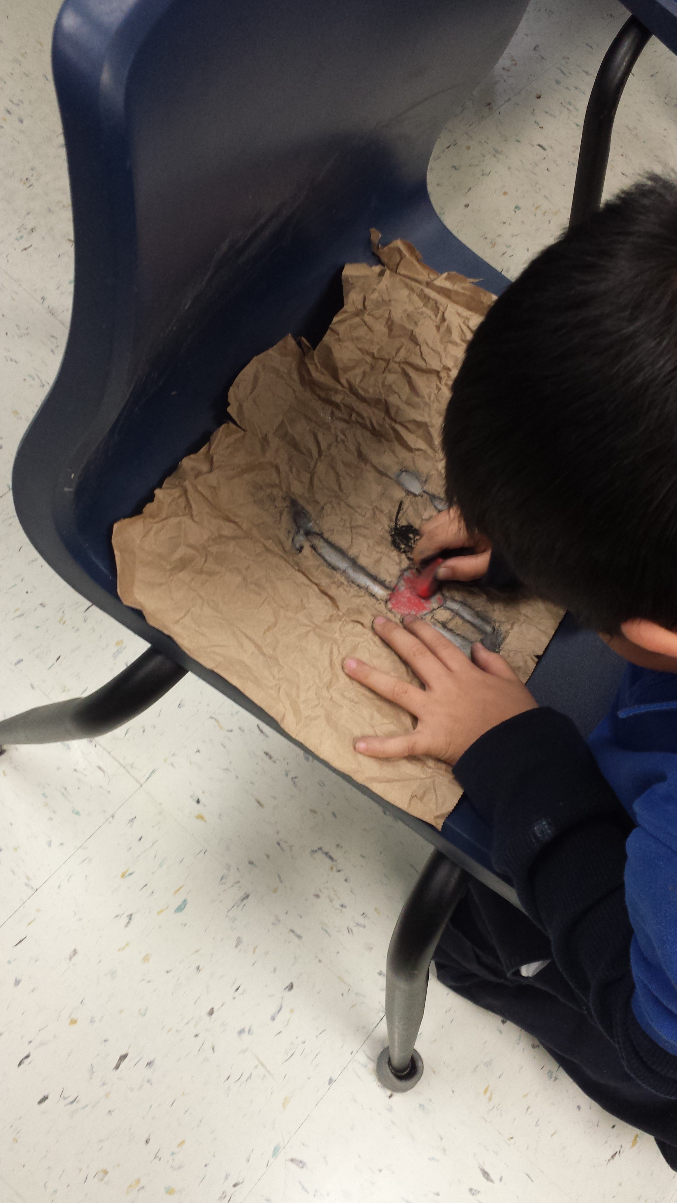 6) Draw your pictographs with red, black, white brown chalk pastels.