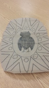 8) Flip over your paper. In pencil, draw the outline of ONE NORTH AMERICAN animal with qualities you’d want. I want to be wise- so an owl is perfect.