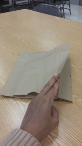 4) Lay your bag out flat. You should have completely cut out the rectangle. Write your name and class on the back.