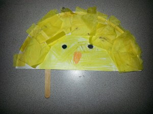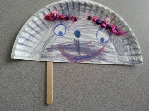 - Put two dots of glue on the top of your popsicle stick. Press and hold your stick onto your plate. Count to 20 in your head while you hold your stick so it can start to dry.