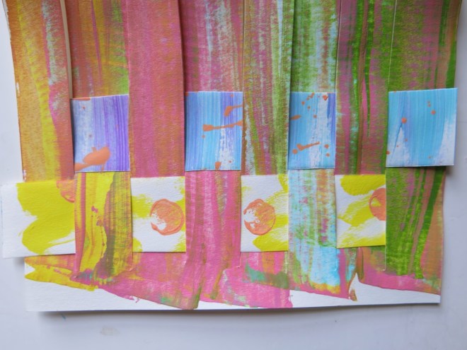 7) Weave strips of paper in an AB pattern. Glue ends.