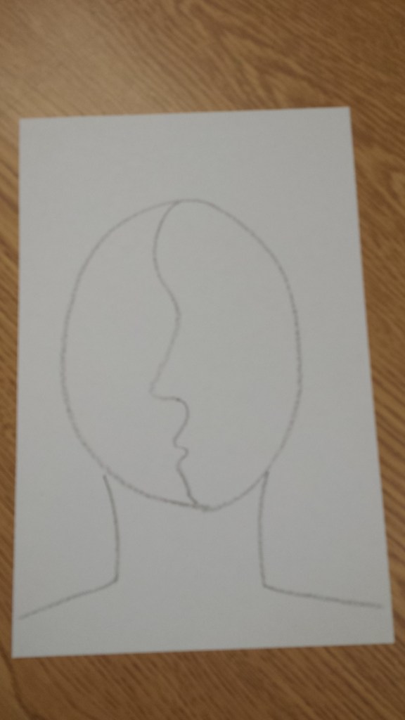 Previous ImageNext Image 20150923_153354 3) Draw a curved line down the middle of your face. You can make it look like facial features.