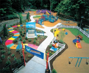 For this painting project, we will look at playgrounds. Playgrounds are full of lines and shapes. Can you find some of these lines and geometric shapes in these playgrounds?
