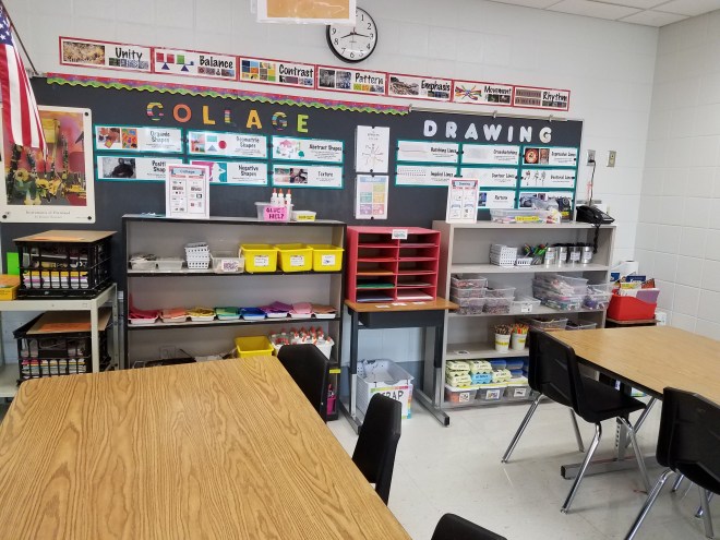 Life is good in the art room! Students are learning about our new centers and we’ve opened up three out of eight so far: drawing, inspiration, and collage. We’ll be opening up a new one each week.