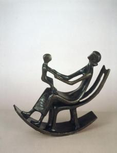 The first grade is learning that 3-D shapes are not flat.  They take up space and create form. We will look at these two sculptures which show movement.  Do these sculptures look like they’re moving slowly or quickly? Why?