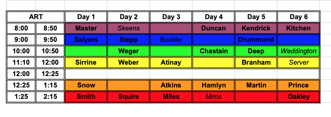 2023-2024 Art Schedule
